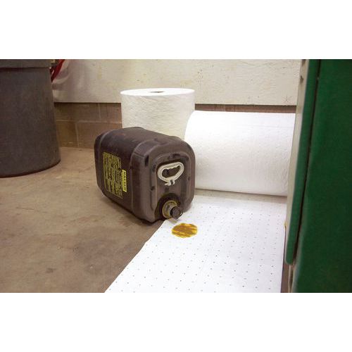 Absorbente sintético que mejora la resistencia al desgarro. Fibra estándar para una utilización en zona fuera de tráfico. Material hidrófobo: repele el agua y flota en su superficie. Absorbe específicamente los aceites e hidrocarburos. Disponible en dos versiones según el uso: un rollo de 81 cm de ancho o dos rollos de 40,5 cm de ancho. Nuestros equipos han probado y aprobado todos los productos de Manutan. Ideal para las intervenciones en el agua o alrededor de máquinas