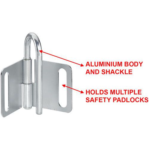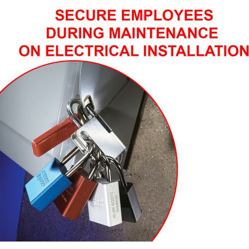 - Perfecta para bloquear a varios trabajadores, el gancho impide que se utilice el equipo durante reparaciones o ajustes.