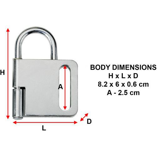 - El gancho de bloqueo de acero resistente a palancas Master Lock n.º 418 tiene un diámetro interior de mordaza de 25 mm y admite hasta cuatro candados.