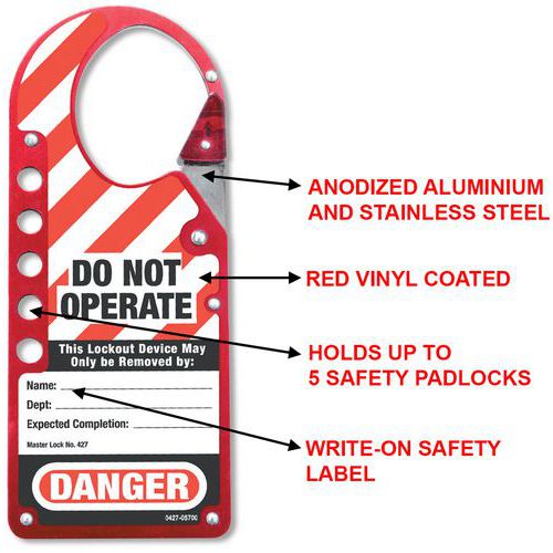 | Nombre del producto | Aldaba de bloqueo n.º 427, Ancho: 73 mm, Longitud: 178 mm, Color: Rojo, Material: Aluminio |