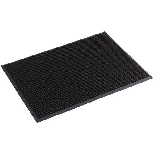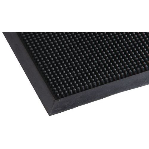 Alfombra antideslizante con relieves de goma y borde biselado. Alfombra resistente a condiciones meteorológicas extremas -20°/+50°. Limpieza automática del calzado gracias a su relieve flexible. No deformable, elástica y resistente, alta protección para las entradas. Fácil mantenimiento con limpieza mediante chorro de agua, adecuada para vehículos de personas con movilidad reducida.