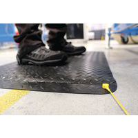 Alfombra antifatiga antiestática resistente para zonas sensibles a la electricidad estática. Superficie de vinilo y dorso de espuma PVC, unida mediante fusión, sin pegamento. Capa central conductora para proteger a los operarios y los componentes. Superficie resistente a muchos productos químicos industriales. Con bordes biselados de serie para reducir el riesgo de caídas.