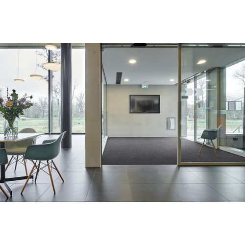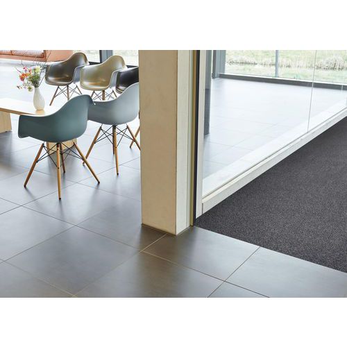 Alfombra de entrada absorbente Delta Hydro TX, vendida por metro lineal. Tecnología para una rápida absorción de la humedad. Práctica, para uso en interiores y en exteriores a cubierto y resistente al desgaste. Fácil mantenimiento mediante aspiradora, chorro de alta presión o sistema de inyección-extracción. Evita pisadas con las suelas mojadas, suelos resbaladizos y riesgo de caídas.
