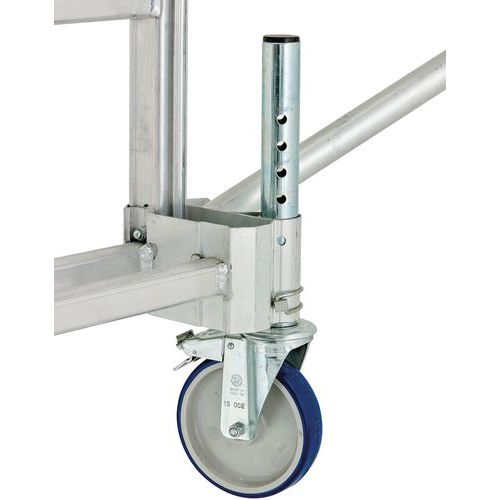 Andamios rodantes, compactos y telecópicos formados de una pieza. Sistema de acceso en altura innovador, muy resistente y polivalente. Despliegue e instalación muy sencilla y ultrarápida (3 minutos). Volumen reducido para facilitar el transporte en un coche pequeño. Ruedas de gran Ø ajustable en altura con sistema de bloqueo. Producto fabricado en Francia. Fabricado en la UE Carga máx. (kg) : 200 kg Garantía al cliente : 2 años