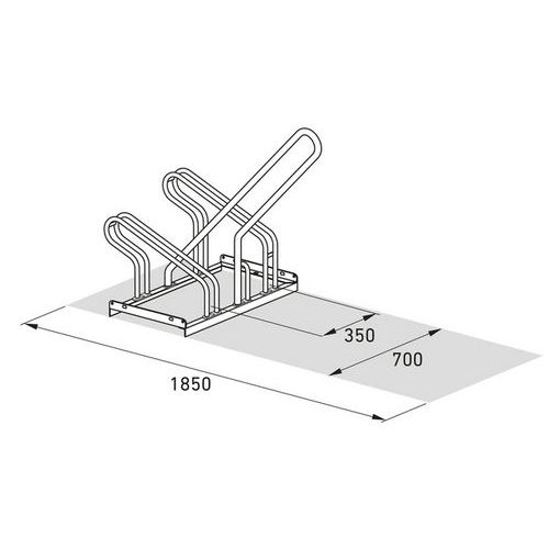 | Nombre del producto | Aparcabicicletas 2302 de acero galvanizado, Longitud total: 700 mm, Nº de plazas: 2, Fondo total: 1850 mm |