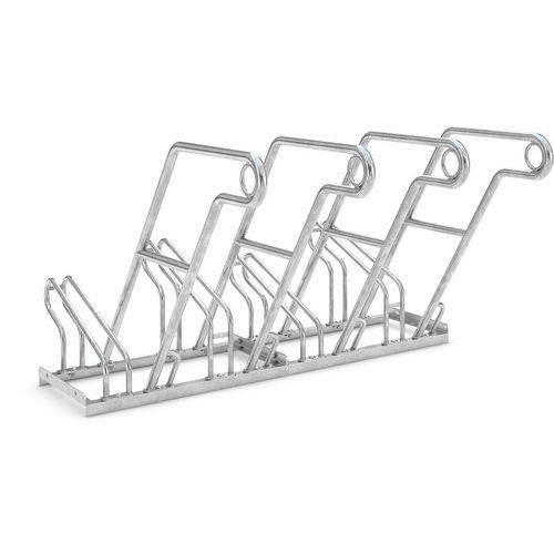 Aparcabicicletas modelo 2600 para ahorro de espacio. Proporciona apoyos cómodos y un espacio de aparcamiento seguro. Equipado con ojales de acero para proteger las bicicletas de riesgos de robo. Resistente a la intemperie. Acabado galvanizado de alta calidad. Fabricado en la UE