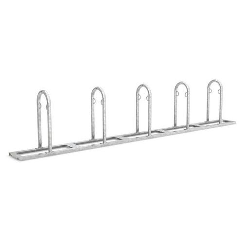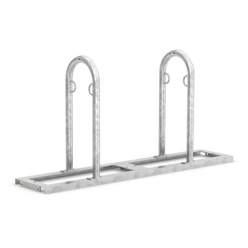 Aparcabicicletas modelo TRACK independiente, sólido y económico. Proporciona un espacio de estacionamiento cómodo y seguro para bicicletas. Con ojales de acero integrados para protección antirrobo. Resistente a la intemperie. Acabado galvanizado de alta calidad.