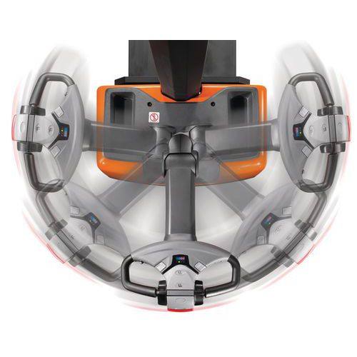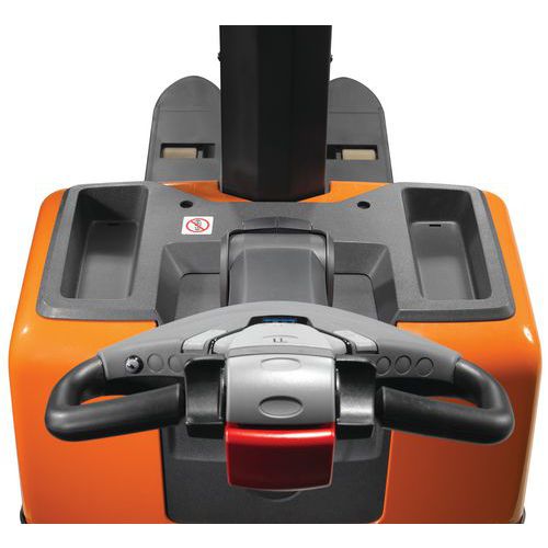 Apilador eléctrico ergonómico y manejable en espacios reducidos.
