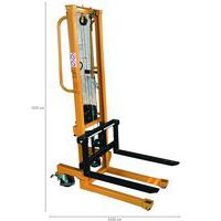 | Nombre del producto | Apiladora manual, Carga: 250 kg, Altura máx. elevación: 1560 mm, Longitud total: 1325 mm |