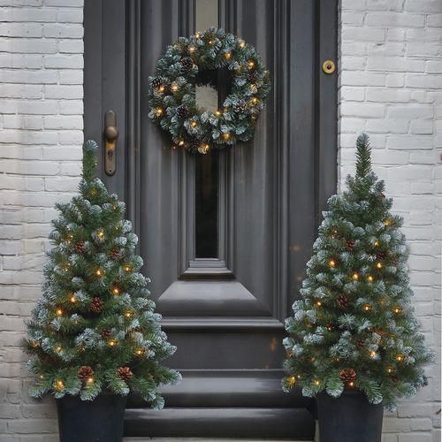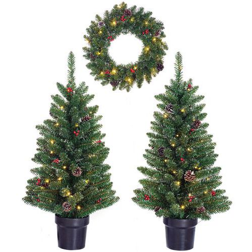Árbol de Navidad artificial con luces y corona Norton - Juego de 2