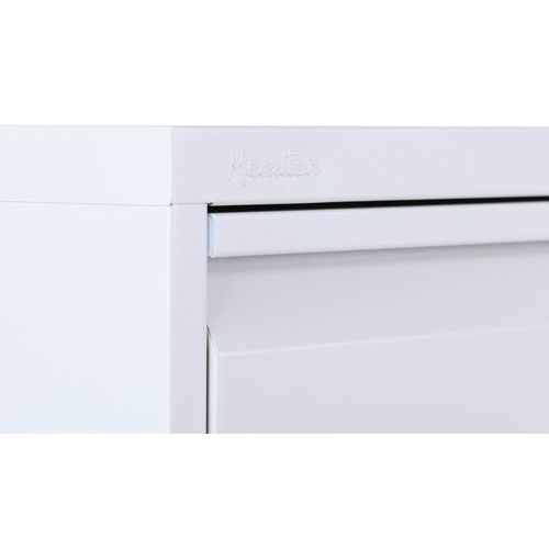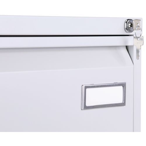 La protección contra el vuelco impide que se abra más de un cajón por accidente. El tirador que ocupa todo el ancho del cajón permite un buen agarre. Archivador con cajones clásico para carpetas de formato A4, folio y gran folio. El producto tiene una base para cada uno de los cajones. La cajonera puede cerrarse con una llave suministrada (1 juego de dos llaves). Consejos de seguridad: - Instalar el mueble sobre una superficie plana - Fijarlo a la pared o a un tabique con una fijación adecuada - Verificar que no se supera la carga máxima aconsejada y que se mantiene una buena distribución - Sistema de cierre con capacidad para 50 carpetas colgantes.