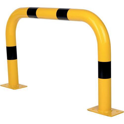 Arco de protección de acero resistente para proteger equipos o máquinas de posibles golpes de equipos de manipulación de materiales. Buena visibilidad gracias a su diseño bicolor amarillo/negro. Adecuado únicamente en interiores. Material de fijación no incluido. Certificado TÜV. Material de fijación no incluido.