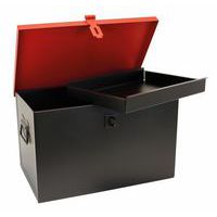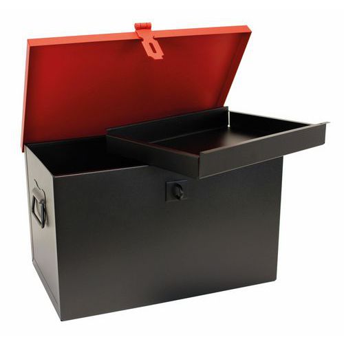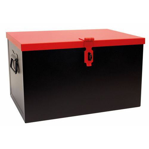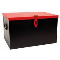 Gran capacidad. Chapa de acero para una alta resistencia. Arcón para obra con caja interior deslizante. 2 asas laterales redondas para facilitar el desplazamiento. Dispositivo de cierre para candado (se entrega sin candados).