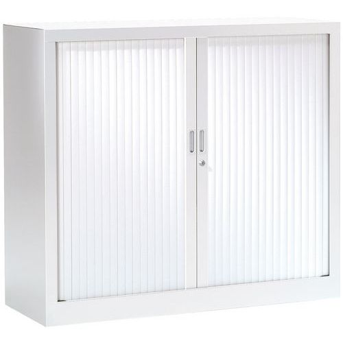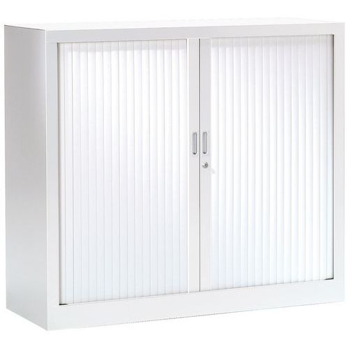 Armario con persianas monobloque. Estantes ajustables equipados para alojar carpetas suspendidas. Fondo plano y 4 cilindros de ajuste. Cerradura con 2 llaves con topes plegables. Persianas de apertura completa y tiradores empotrados. Armario con persianas monobloque. Estantes ajustables equipados para alojar carpetas suspendidas. Fondo plano y 4 cilindros de ajuste. Cerradura con 2 llaves con topes plegables. Persianas de apertura completa y tiradores empotrados. Elija un armario funcional, rígido y robusto