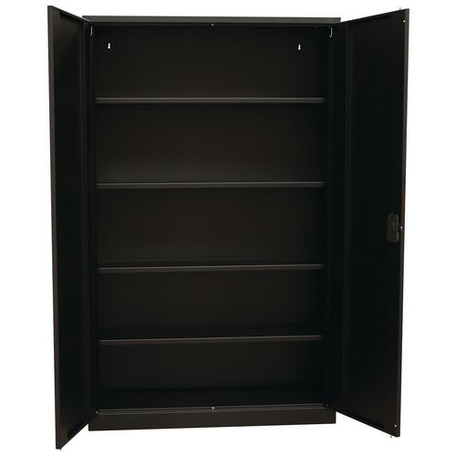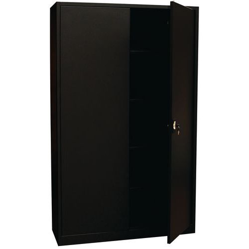 Armario de puertas batientes con pared de una gran solidez. 4 baldas regulables que pueden soportar hasta 60 kg aproximadamente. Cierre mediante una cerradura de cilindro de 3 puntos. El armario alto de puertas batientes Orel ofrece una solución de almacenamiento práctica y elegante para organizar su espacio. Gracias a su diseño moderno, se integra fácilmente en cualquier oficina o espacio profesional. Las puertas batientes permiten acceder a todos los objetos de forma rápida y sencilla. Su gran altura permite disfrutar de una capacidad de almacenamiento óptima para documentos, ropa o accesorios. Su diseño con materiales resistentes garantiza estabilidad y durabilidad en el uso diario.