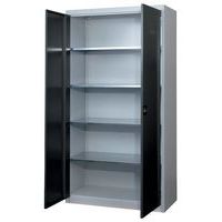 Armario con puertas batientes con cerradura de seguridad de asa giratoria. De chapa de acero de calidad superior. Armario con puertas batientes con cerradura de seguridad de asa giratoria. De chapa de acero de calidad superior. 4 estantes galvanizados. Capacidad de carga por estantería: 60 kg. Se entrega montado.