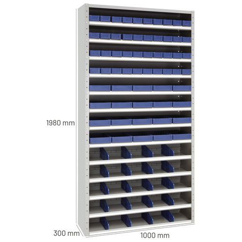 | Nombre del producto | Armario de compartimientos con cubetas extraíbles, Material: Acero, Altura total: 1980 mm |