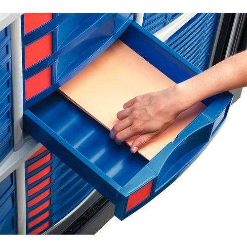 Almacenamiento plano: para ahorrar espacio. Búsqueda de documentos facilitada gracias al código de color de las etiquetas. Cajones intercambiables y fáciles de manejar. Cierre mediante cerradura. Escoja un sistema de almacenamiento seguro y extraordinariamente práctico que ofrece un 35 % más de espacio Escoja un sistema de almacenamiento seguro y extraordinariamente práctico que ofrece un 35 % más de espacio