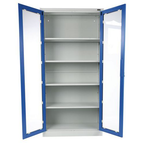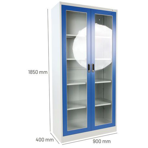 | Nombre del producto | Armario de puerta transparente con 4 estantes, Carga máx.: 200 kg, Material: Acero, Altura total: 1850 mm |