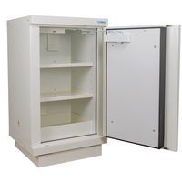 Armario de seguridad con cierre con llave. Asa en toda la altura del armario para una mejor ergonomía y facilidad de apertura. Orificios de ventilación para conectar a una ventilación. Baldas de retención regulables cada 6,4 cm. Conformes a las normas EN14470-1 y FM 6050. Juntas de puerta termodilantantes. Punto de fijación para puesta a tierra. Resistencia al fuego durante 90 minutos y probados hasta 105 minutos.