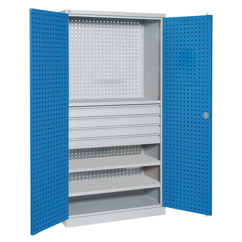 | Nombre del producto | Armario de taller con cajones y balda de madera, Carga máx.: 500 kg, Altura total: 1945 mm, N.º cajones: 4 |