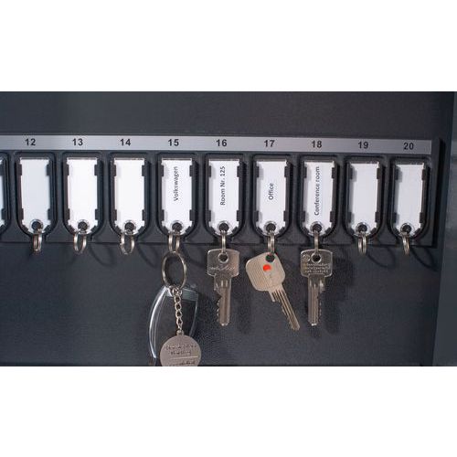 Armario de llaves para llaveros magnéticos Magnettag de Pavo, gris, con cerradura electrónica. Una auténtica innovación en la gestión de claves. Este armario para llaves de alta gama combina el más alto nivel de seguridad con una excelente organización de las llaves. Gracias al sistema de fijación magnético, las llaves se colocan en una única posición para una visibilidad perfecta. La etiqueta siempre se queda de frente y permite encontrar rápidamente las llaves.