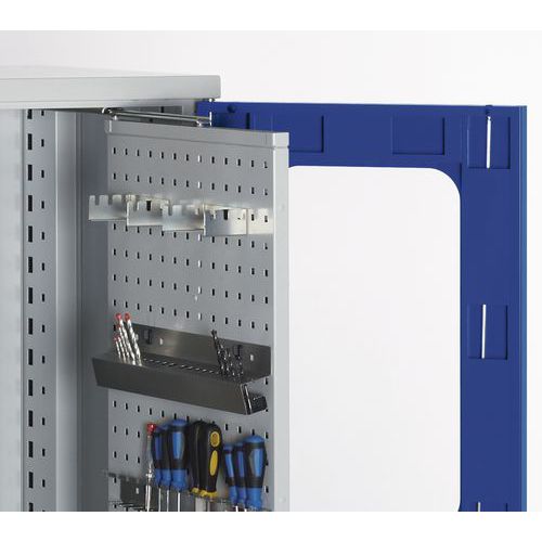 Cuelgue las herramientas con orden en un armario para herramientas.