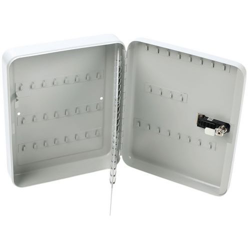 Armario para llaves con cerradura de código y llave. Acabado con pintura en polvo duradera de alta calidad. Para garantizar una protección óptima, está equipado con una cerradura con código de combinación y pulsador mecánico. Está diseñado para proteger todas sus llaves, ya sea en el trabajo o en casa. Disponible en diferentes versiones (capacidad de 20 o 100 llaves).