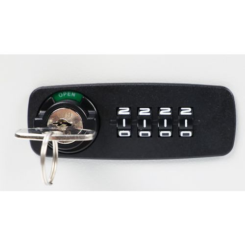 Armario para llaves con cerradura de código y llave. Acabado con pintura en polvo duradera de alta calidad. Para garantizar una protección óptima, está equipado con una cerradura con código de combinación y pulsador mecánico. Está diseñado para proteger todas sus llaves, ya sea en el trabajo o en casa. Disponible en diferentes versiones (capacidad de 20 o 100 llaves).