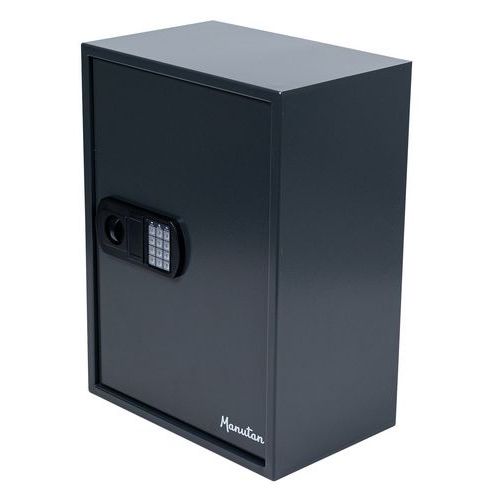 Armario para llaves de alta seguridad – Manutan Expert Armario de llaves de alta seguridad con doble cierre: con llave y código. Cuenta con prácticos soportes extraíbles para llaves. Garantía al cliente : 10 años
