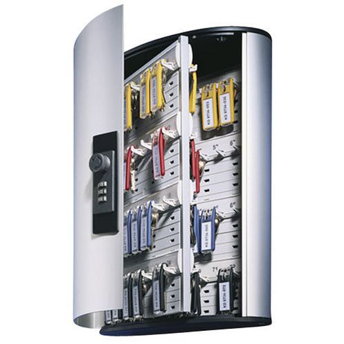 Armario de diseño para llaves. Se adapta al tamaño de sus llaves gracias a las barras de altura regulable. Seguridad garantizada mediante cerradura de código. Funcional: la puerta se abre a 90º. Combinación que se puede modificar regularmente: 1.000 combinaciones posibles. Guarde y organice sus llaveros Key Clip