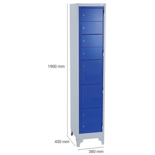 | Nombre del producto | Armario ropa limpia, Tipo de guardarropa: Con cajoneras, Material: Acero, N.º casillas/columna: 10 |