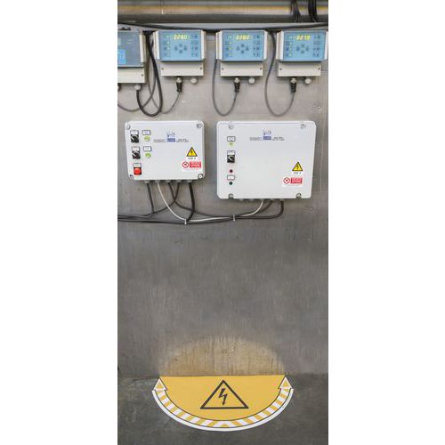 | Nombre del producto | Autoadhesivo para el suelo, Material: PVC, Ancho: 700 mm, Color: Amarillo, Panel forma: Semicírculo |