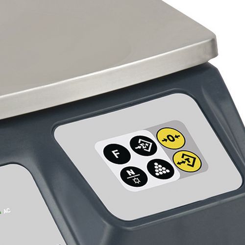 - Funciones: pesaje, tara hasta 100 % de la capacidad, recuento, totalización.