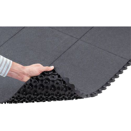 | Nombre del producto | Baldosa antifatiga Cushion Ease Solid, Ancho: 91 cm, Longitud: 91 cm, Uso alfombra: Muy intenso, Color: Negro |