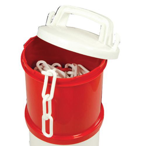 Baliza estándar formada por: 1 base, 4 elementos (2 colores), 1 tapa y 5 metros de cadena. Se suministra con: - Tornillos de montaje de la base/segmento, - Barras de montaje/desmontaje de los segmentos.