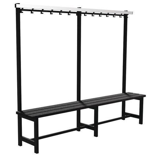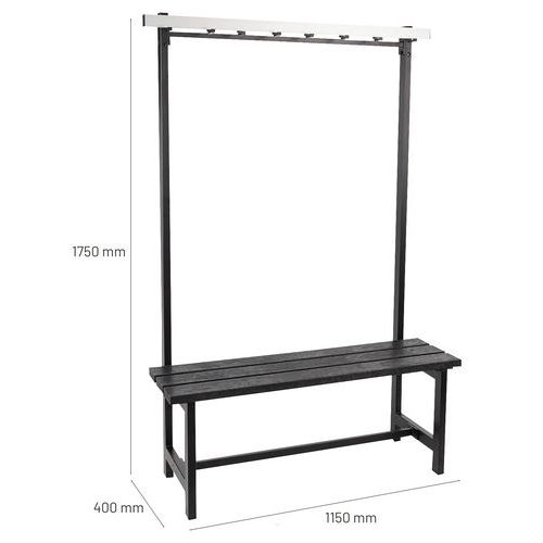 | Nombre del producto | Banco colgador plástico, Asiento material: PVC, N.º de colgadores: 8, Ancho: 1150 mm, Asiento color: Negro |
