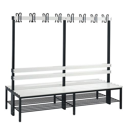 Banco de PVC con colgadores CP - De 8 a 16 colgadores - Dos caras - Con respaldo y rejilla para calzado