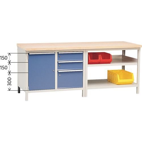 | Nombre del producto | Banco de trabajo completo Modul 200 con armario y cajones, Carga máx.: 300 kg, Altura total: 810 mm |