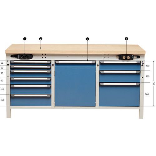 | Altura Cajón | 2 x 60, 2 x 90, 2 x 120, 2 x 150, 1 x 300 mm |