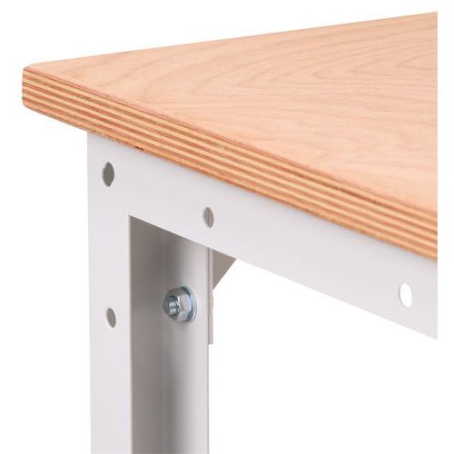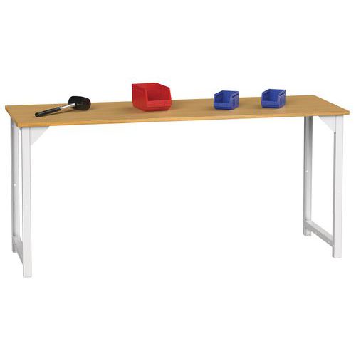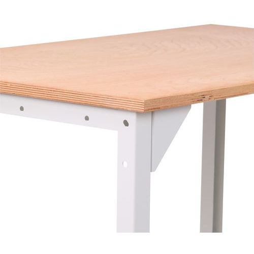 Banco de trabajo robusto con tablero laminado de haya.