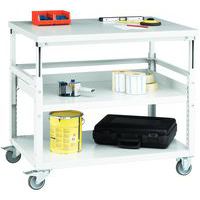 - Banco de trabajo equipado con 4 ruedas, 2 de ellas pivotantes con freno.