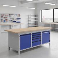 - Banco de trabajo con una capacidad de carga excepcional de hasta 1000 kg para las operaciones de montaje más exigentes. El tablero laminado de haya de alta resistencia garantiza la máxima durabilidad. La amplia anchura de trabajo de 200 cm permite trabajar con total comodidad. El sistema de almacenamiento integrado y organizado facilita el acceso a herramientas y componentes. Diseño robusto y estable para un uso intensivo con total seguridad. Se ofrecen dos posibilidades de configuración: dos cajoneras independientes o una sola cajonera combinada.