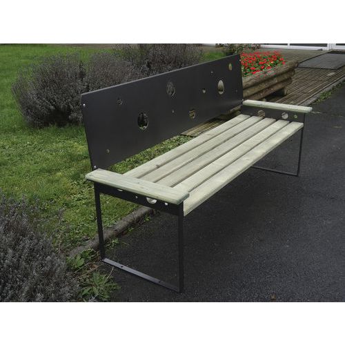 Banco refinado, bimaterial: acero/madera, acero/HPL o acero/aluminio.