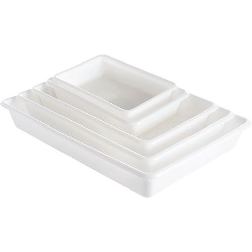 Bandeja alimentaria plana multiuso: preparación, adobo, decantación, descongelación, almacenamiento de muestras testigo, etc. Especialmente diseñada para el sector alimentario. Ocupa un espacio mínimo al ser apilable en vacío. Tamaño perfecto para frigoríficos.