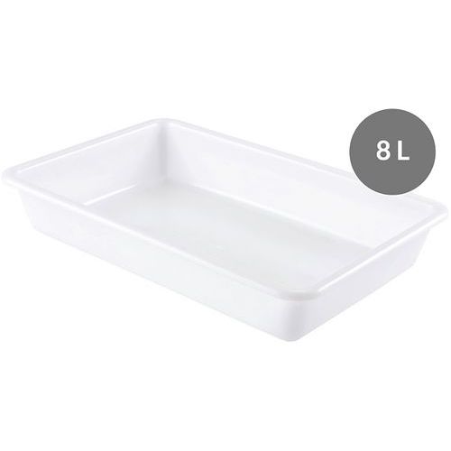 Bandeja alimentaria plana multiuso: preparación, adobo, decantación, descongelación, almacenamiento de muestras testigo, etc. Especialmente diseñada para el sector alimentario. Ocupa un espacio mínimo al ser apilable en vacío. Tamaño perfecto para frigoríficos.