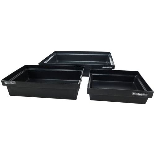Bandeja de retención 100 % recicladas. Capacidad: de 10 a 100 litros. Fondo plano.