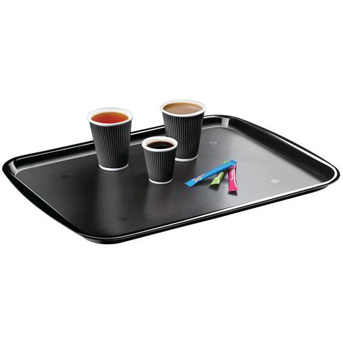 | Nombre del producto | Bandeja negra rectangular, Material: Plástico, Ancho: 37.2 cm, Longitud: 53.2 cm, Altura: 2 cm, Color: Negro |
