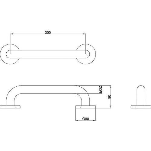 Barra de apoyo diámetro 32 mm-Inox.satinado, Material: Acero inoxidable, Tipo de fijación: Para atornillar