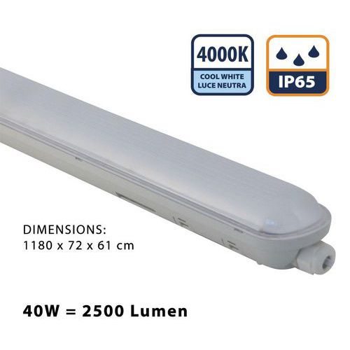 Plafón estanco IP65 con LED integrados de 21 W, 2500 lm, de gran luminosidad. Equipada con un prensaestopas de entrada y salida para el montaje en serie. Excelente para entornos húmedos como garajes, sótanos y lavaderos. Adecuado para zonas exteriores expuestas a chorros de agua directos y a la penetración de polvo fino. Estructura y difusor de policarbonato.
